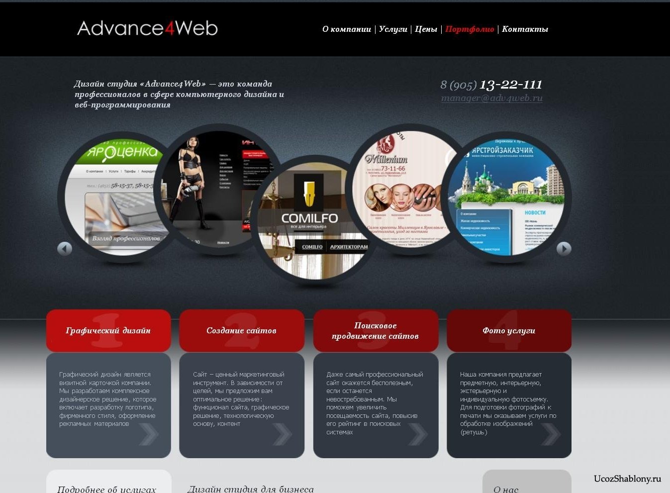Этот шаблон подойдет для сайта посвященного дизайну, графике или редактору фотошоп.
