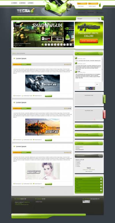 Шаблон Nvida Tegra3 очень красив. Один правый боковой широкий контейнер можно распределить под нужный вам функционал, в нём есть огромное место под медийную и графическую рекламу, красивый широкий мини-чат, вертикальное меню и множество других финкций, которые вы сами сможете туда установить. Имеет красивый слайдер переключения изображений, а в сайд-баре имеется много разных блоков. Также его можно использовать посвященному играм блогу. В шапке сайта есть красивая жёлтая форма регистрации и входа пользователей и всё такое, что нужно для полноценного создания сайтов. Шаблон Nvidia Tegra 3 уникален своей яркостью и красотой, что каждый бы посетитель вашего такого сайта, сразу захотел бы себе такой же на Ucoz, чтоб восхищаться таким красивым и ярким дизайном. Скачивайте шаблон, устанавливайте в конструктор и живите яркой жизнью на своём сайте. Все виды дизайнов Nvidia Tegra очень красивы, видно что их создавал какой то хороший и жизнерадостный дизайнер.