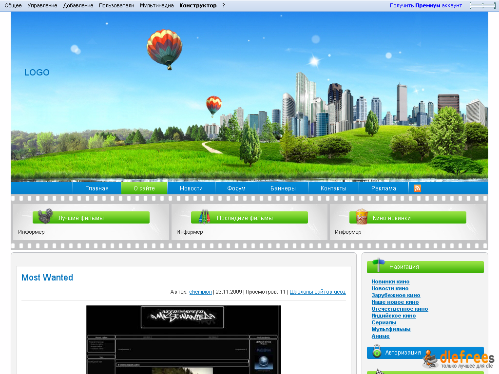 Красивый светлый ucoz шаблон Moviland подойдет для сайтов с софт тематикой или для онлайн фильмов и торрент трекеров. Приятно будет смотреться на вашем сайте, множество функций этого шаблона не дадут вам покоя, захочется сделать из него сначала одно, а потом совсем другое, но вы сразу определитесь, что у вас будет за сайт. Советуем на его основе создать портал обо всём, чтобы вам не зацикливаться на одном, то есть портал обо всём, тогда вы будете добавлять разные материалы, а об одном чём то, со временем надоедает. Верхняя его часть простая, никаких наворотов, просто логотип, горизонтальное меню для быстрой навигации по сайту, форма регистрации, формы входа, мини-профиль и форма поиска по сайту. Блоки боковых контейнеров отличаются цветом, в одном контейнере разноцветные блоки, которые можно использовать по вашему назначению, а именно под вертикальное меню, категории разделов по сайту, счётчики онлайн статистики и кто в онлайн, рекламные вертикальные баннеры и многое другое, то что придёт вам в голову, можно всякими виджетами и информерами заполнить, тоже будет неплохо. Скачивайте бесплатно этот шаблон Moviland для ucoz и делайте из него всё, что захотите, вам решать, ваш же сайт будет. Удачного наполнения и продвижения вашему сайту. Желаем всего наилучшего в создании сайтов в системе Ucoz.