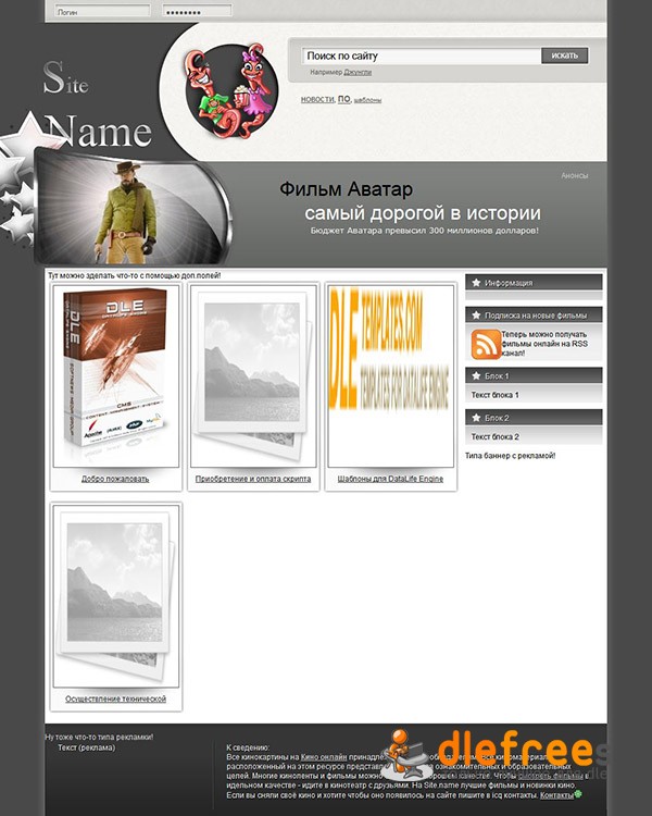 Красивый шаблон для сайтов о фильмах, также идеально подойдет для варез портала.