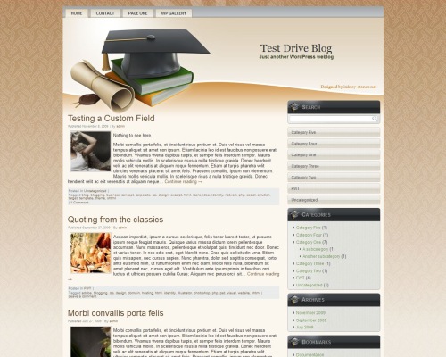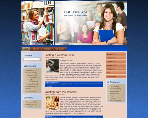 Хороший шаблон для сайтов образовательной тематики. Поддерживает виджеты, три колонки, форма поиска по сайту и два сайд бара. Вверху сайта уникальное горизонтальное меню для быстрой навигации по сайту . Логотип сайта можно не менять , просто заменить название и всё , для сайта о книгах он очень хорош и не сильно нагружает сайт . В первом левом боковом контейнере есть форма поиска и блок категорий разделов сайта . В левом контейнере можно установить информер о новых поступлениях книг или каких либо новинок . Этот шаблон для книжных сайтов простой и нет никаких навароченных идей , подойдёт как новичкам, так и профессионалам , создайте свой сайт о книгах и продвиньте его по сети интернета , люди заинтересованные в этом обязательно изучат ваш библиотечный сайт и может и закажут у вас пачки макулатуры , чем вы и будете рады . Скачивайте архив , устанавливайте себе в конструктор и создавайте свою книжную библиотеку .