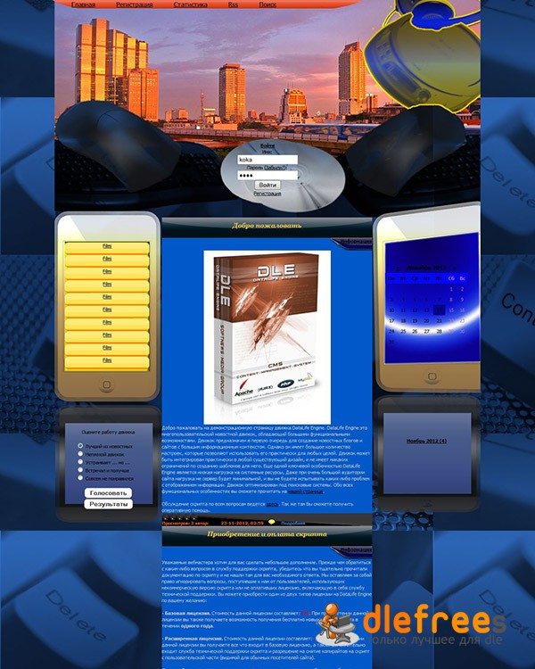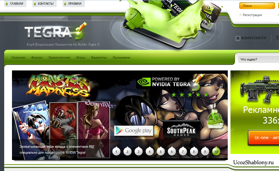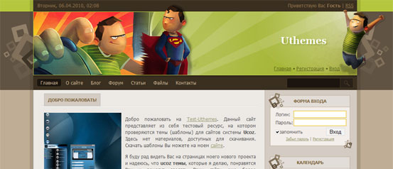 Замечательный шаблон с красивым респектабельным дизайном подходит для компьютерной тематики, приятный яркий цвет будет радовать глаз. На нём можно создать небольшой портал о программах или сайт визитку о ремонтах, покупки или продажи компьютерной техники и изделий. Шаблон обычный, компьютер как логотип, рядом рамка под текст приветствия и горизонтальное меню, один правый боковой контейнер под всё, что угодно. На главную страницу выведите информер о чём надо и наполняйте статьями, новостями и файлами. Перед установкой его в конструктор, создайте ещё один сайт и испытайте шаблон на нём, всегда для проверки шаблонов, используйте дополнительный сайт, чтоб не натворить ничего на своём и скрипты тоже так же, короче говоря эксперементальный сайт. Перед установкой создайте сайт со стандартным одним боковым правым контейнером, а потом устанавливайте шаблон туда. Желаем вам приятно провести время при установке зелёного шаблона.