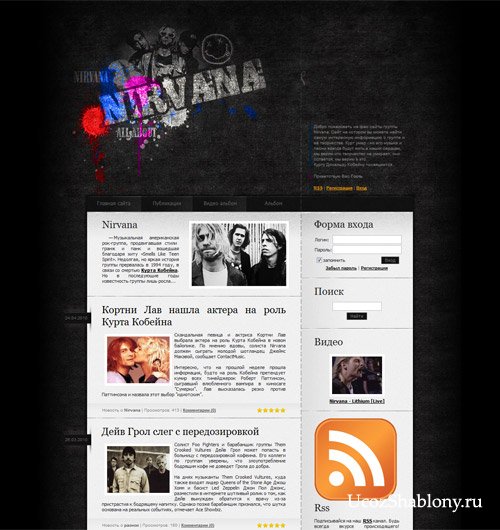 Шаблон подойдет для фан-сайта посвященного творчеству группы НИРВАНА. Выполнен в блоговом формате.