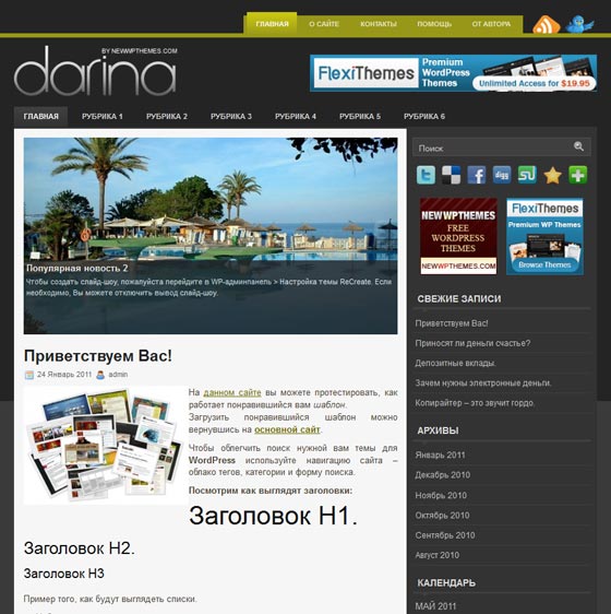 Общетематический шаблон Darina для Ucoz.