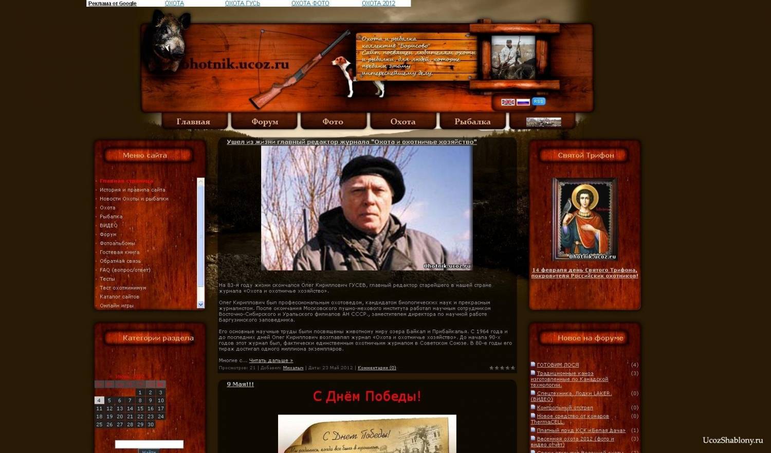 Шаблон предназначен для сайтов с тематикой охота и рыбалка. 3-х колоночная верстка дизайн красно черный.