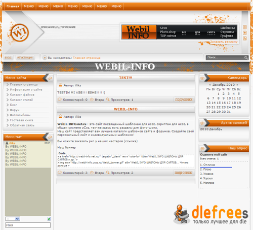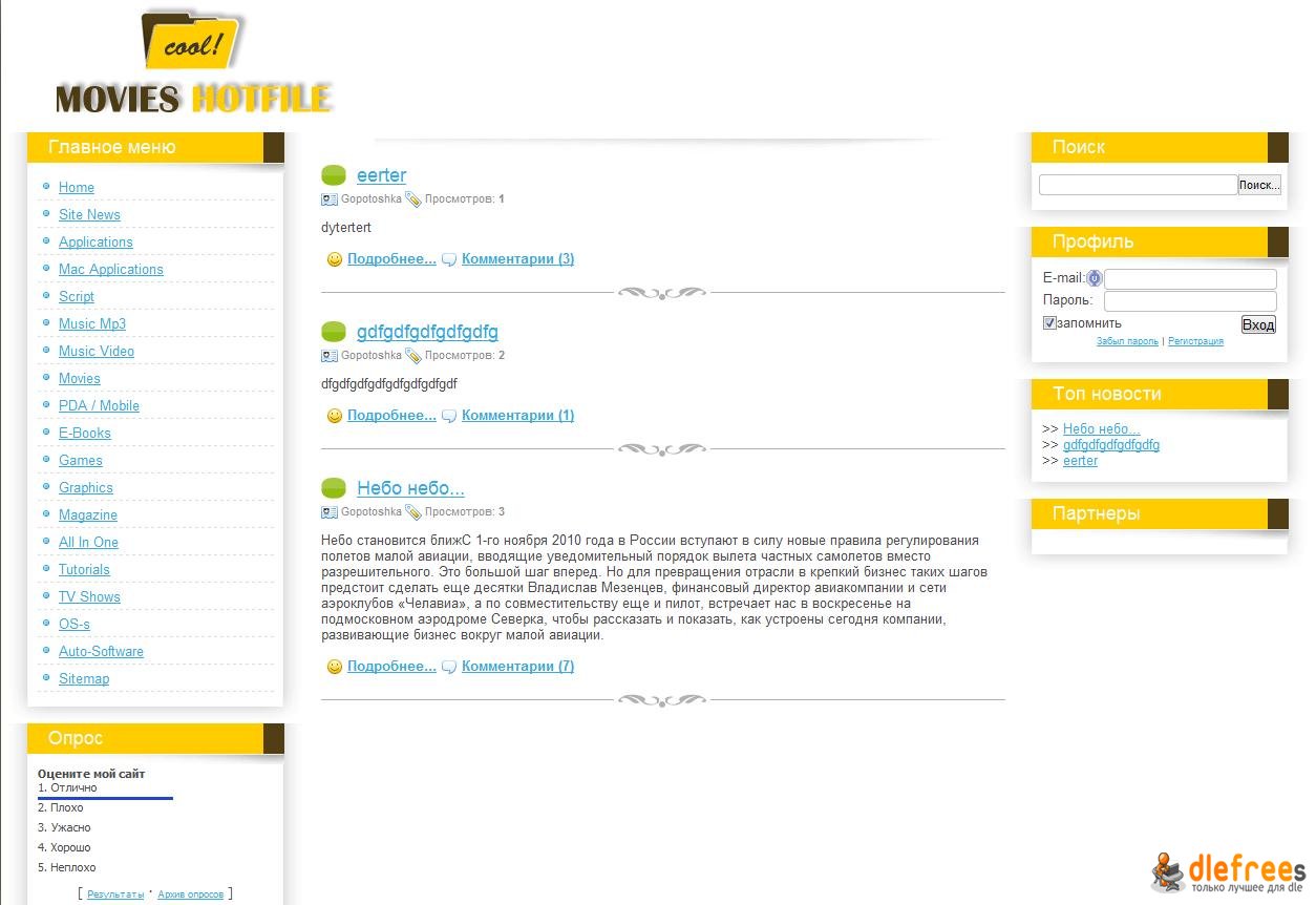 Хороший шаблон порталов варез тематики. Верхняя часть шаблона сделана под логотип сайт, рекламную рамку для стандартных и распостранённых банеров и красивое навигационное оранжевое,горизонтальное меню. Дизайн навигации сайта не требует установки а также симпатичный дизайн выполненный в светло оранжевых тонах. Боковые контейнеры шаблона заполните нужной вам информацией и главную страницу оформите контентом, информерами о новых добавленных файлах или новостях и изображениями нужной вам тематики, на этом ваш сайт будет готов, побольше файлов и нформации , помогут вам заинтересовать посетителей . Скачивайте шаблон варез сайта портала и делайте на нём свой интернет портал, или же можете сами подобрать к нему свою тематику. Такие светлые дизайны обычно и привлекают посетителей, по этому и советуем создать ваш сайт именно на этом дизайне. Установка не занимает много времени, так как занимает само наполнение сайта.