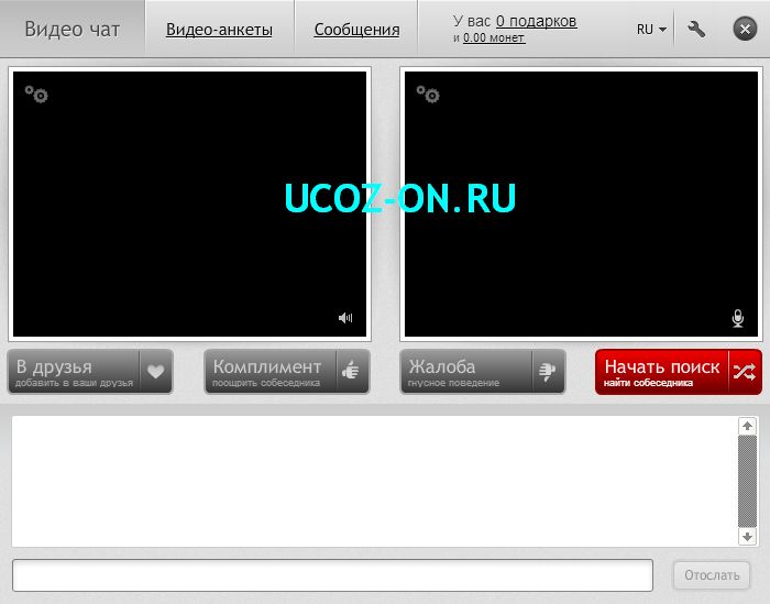 Вам нужен скрипт видеочата для Ucoz, тогда качайте архив. Возможность работы скрипта при наличии микрофона и вебкамеры, работает на подобии скайпа, установка не требует много времени и места, и так к самой установке скрипта, скачиваем его, берём код от туда и устанавливаем на любую страницу сайта, если вы хотите установить его в блок контейнера, тогда надо поменять в коде некоторые цифры, а именно, находим там такое - "width:700px; height:550px; и это нынешний размер изображения, меняем его например на "width:300px; height:200px; типа того, он становится меньше, смотря у кого блоки какие, вы сами сможете подогнать его под нужный вам размер. Скачивайте скрипт видеочата для ucoz и общайтесь на здоровье со своими друзьями, желаем всего наилучшего.