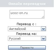 Хотите переводить иностранные слова или фразы у себя на сайте, вот вам пожалуйста скрипт переводчика на сайт. Скрипт Переводчик от Microsoft - Скрипт переводчик от Microsoft для ucoz, цветовая гамма скрипта легко меняется, изменив "background-color: цвет; " в коде скрипта. Устанавливайте этот скрипт переводчика, и ваши пользователи будут довольны, увеличением функциональности ваших ucoz сайтов. Скачивайте архив, в нём код, устанавливайте его себе на сайт, в удобное место для вас, и что не ясно, сразу переводите.